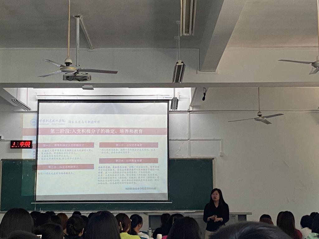 郑静书记详细讲解了发展党员中的基本程序以及发展党员工作中主要材料的书写要求和注意事项。通过此次培训,同学们端正入党动机,了解中国共产党党员发展流程,思想紧跟时代,同时以实际行动向党组织靠拢,勤奋学习。学习党的理论知识,学习党的二十大精神,努力学习专业知识。积极发挥先锋模范作用,为太阳成集团tyc122cc良好学风建设贡献自己力量,为中国共产党带来更加勃发的生命力。