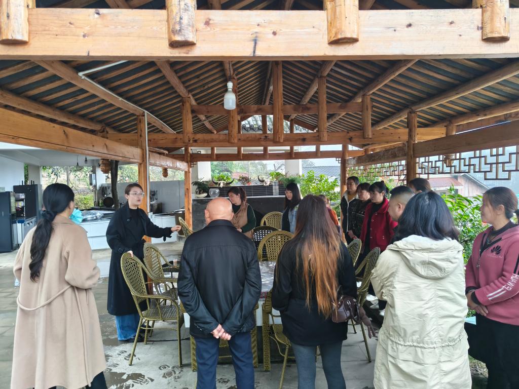 随后,周蒨介绍了学院的专业设置、团队力量、人才培养特色以及在服务地方经济社会发展方面所做的工作和取得的成效。她表示,学院始终将“助力乡村振兴”作为重要使命,此次在双紫村设立老员工志愿者社会实践基地,既是延伸公司产品场景、强化员工实践能力的重要举措,也是学院主动对接地方需求、下沉服务资源的具体实践。下一步,学院将结合双紫村羌族文化特色与生态旅游资源,在乡村旅游规划优化、文化传承推广、特色农产品品牌打造、民宿服务技能培训等方面提供精准支持,推动专业资源与乡村需求深度匹配,力争将基地建设成为员工成长的“实践课堂”、校地合作的“示范样板”。