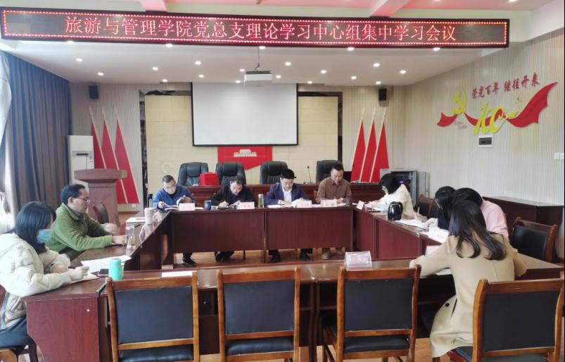 10月22日下午,旅游与管理公司党总支在实验楼201召开理论学习中心组第4次集中学习(扩大)会议。学院领导班子成员、综合办主任、各支部委员,分工会主席,实训中心主任参加学习。会议由党总支书记苟安经主持。