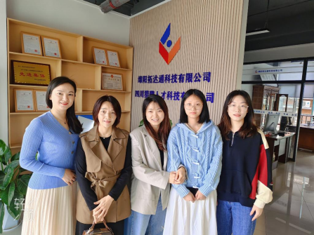 在四川九华光子通信技术有限公司、四川猎聘人才科技有限公司等,谢婷婷等分别与实习同学及其部门领导交流沟通,了解员工在实习过程中的工作安排、通勤情况、生活状况以及实习过程中遇到的困难和问题,收集实习单位对专业人才培养的意见和建议。员工们认为在实习过程中得到不少锻炼机会,能够将专业知识与工作实践联系起来。同时,实习单位的领导和工作人员对同学们也给予了很高的评价,充分认可公司员工爱岗敬业的工作态度以及踏实认真的工作作风,希望学院能够为公司继续输送更多的人才。