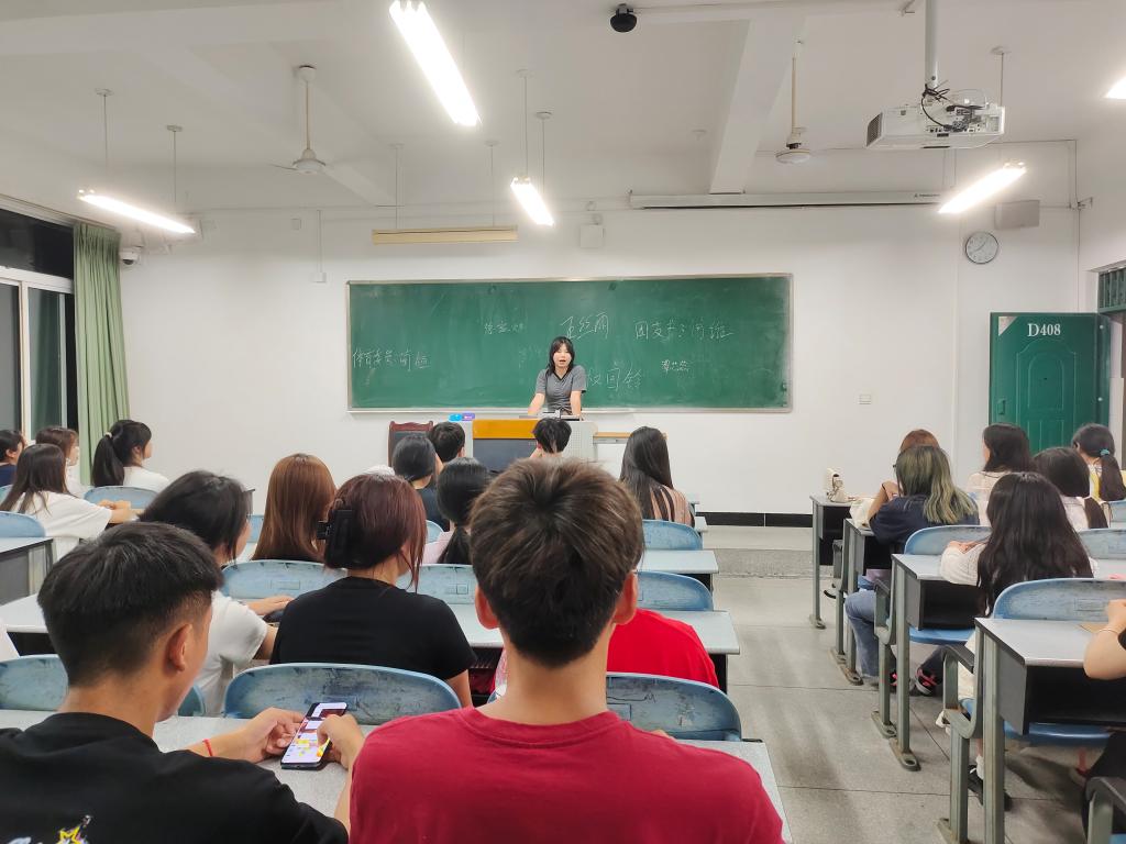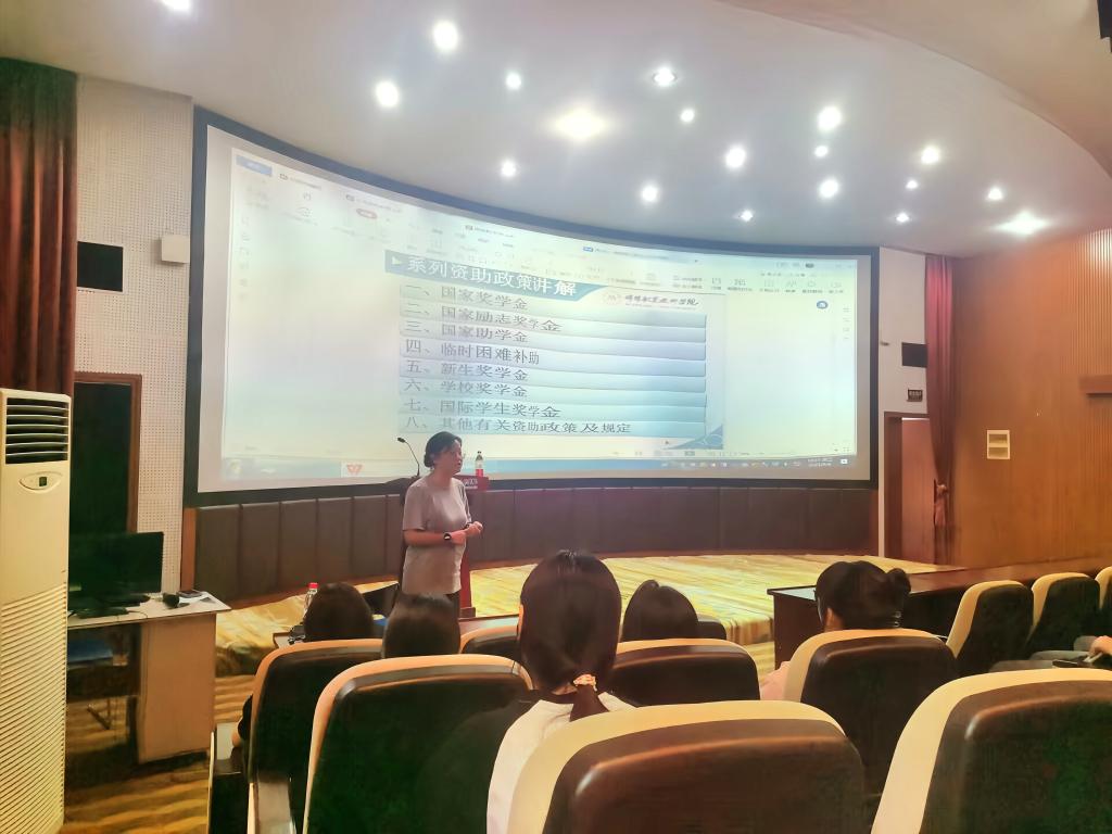 9月6日上午,员工党支部书记郑静为同学们讲解了学校奖学金与国家贫困补助金的申请、认定流程及党员发展流程。