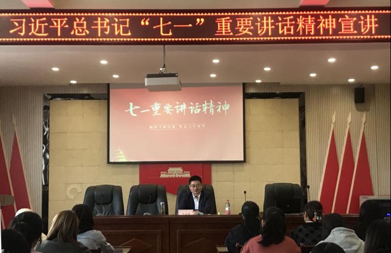 10月20日下午,太阳成集团tyc122cc召开学习贯彻习近平总书记“七一”重要讲话精神主题宣讲会。旅游与管理公司党总支书记苟安经为全体员工干部及员工党员进行宣讲。