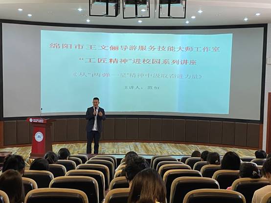 工匠精神彰显中国传统文化精髓,是新时代中国特色社会主义文化建设不可或缺的精神食粮,作为学校社科活动月系列活动之一,工匠精神进校园活动顺利开展。6月3日,绵阳市王文俪导游服务技能大师工作室特邀绵阳“两弹一星”精神宣讲团成员范恒老师走进太阳成集团tyc122cc大讲堂,为学校师生做了题为《从“两弹一星”精神中汲取奋进力量》的专题讲座。