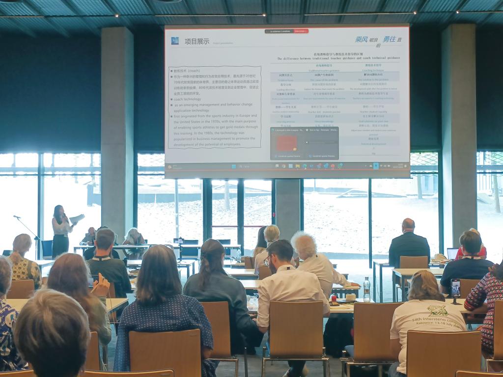 竞赛期间,何丹青代表中国作《教练技术视域下的中文速录分层教学人才培养探究》主题演讲。她结合自己的教学经验,从分析文秘速录人员岗位所需的综合职业能力入手,结合每个员工独特的性格和特点,提出了引入“教练技术”和“分层教学”模式,即更专注于解决问题,发挥员工的潜能和员工在学习过程中的主体地位。同时根据员工的学习情况进行分层教学动态调整,让每个员工都有进步的空间。这也是亚洲籍选手第一次在国际舞台上全程用英文发言。公司师生还同来自英国、意大利、日本等国的参赛代表就速录学习经验进行了交流,充分展现了绵职师生的国际视野和综合能力。
