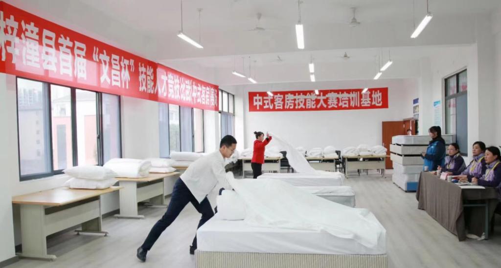 2月25日,由中共梓潼县委、梓潼县人民政府主办的梓潼县首届“文昌杯”技能人才竞技比武活动在梓潼县七一职中圆满落幕。应梓潼县人民政府,梓潼县七一职业中学邀请,学院选派申小婷饭店服务技能大师工作室成员为大赛提供指导和执裁服务,申小婷、王雪、王艺洁、王雪娇等担任此次技能比武活动中餐宴会主题摆台、中式客房铺床组评委。
