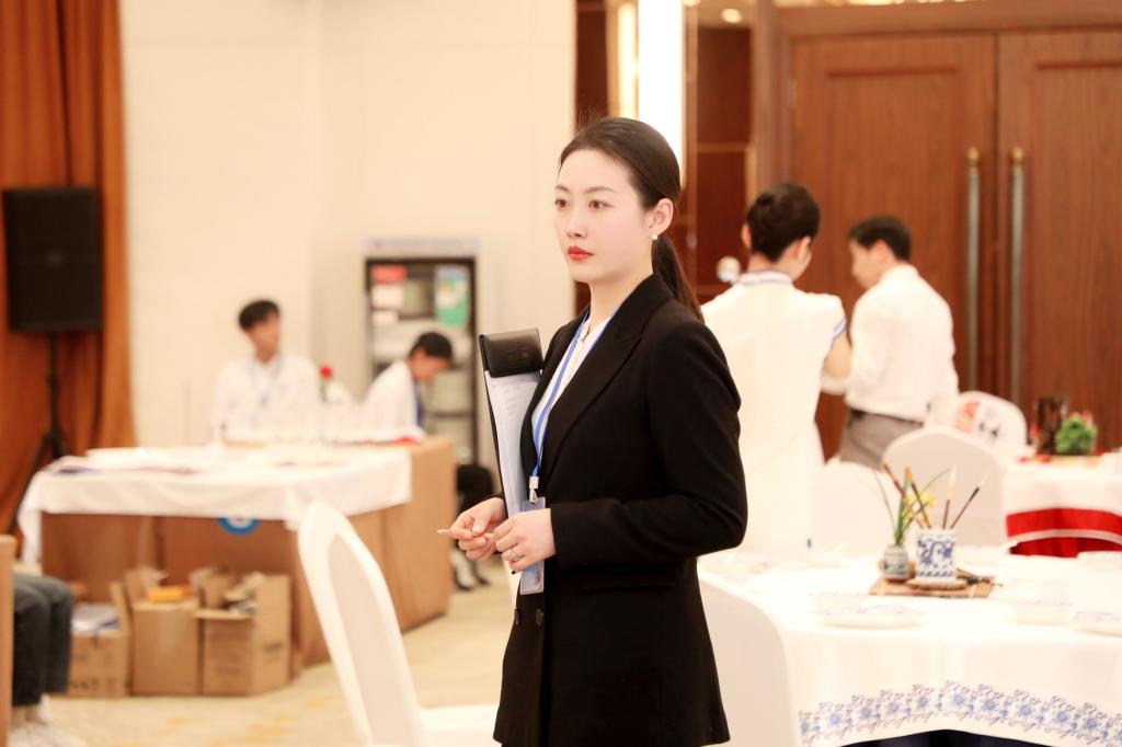 在执裁过程中,申小婷老师依托丰富的行业经验,严格按照及大赛评分细则,认真履行裁判职责,获得比赛各方的高度评价和认可。赛事结束后,她还针对餐厅服务员赛项进行了细致全面的总结点评,为选手们提供了针对性的提升建议。
