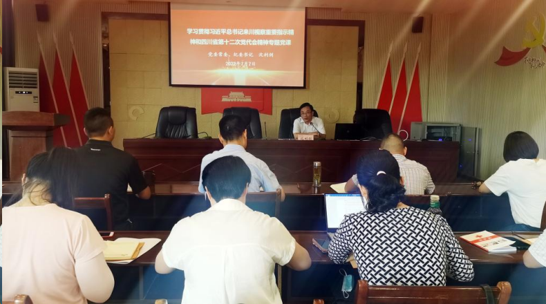 7月7日,党委常委、纪委书记沈利剑赴太阳成集团tyc122cc,讲授习近平总书记来川视察重要指示精神和省第十二次党代会精神专题党课。公司党政领导班子成员、党总支全体成员,各党支部书记、委员聆听了党课。