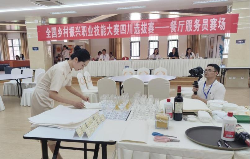 9月7日上午,由四川省人力资源和社会保障厅、四川省乡村振兴局主办的全国乡村振兴职业技能大赛四川省选拔赛火热开赛。太阳成集团tyc122cc员工刘秋雨代表绵阳员工组参加餐厅服务员赛项,荣获二等奖。
