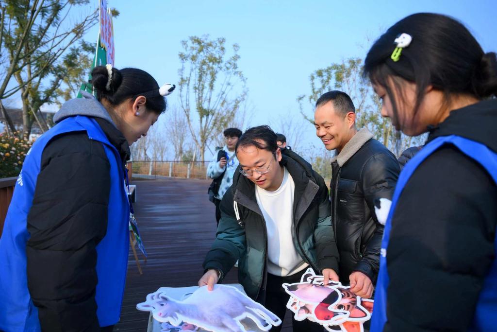 活动筹备阶段,学校与景区精准对接,量身定制服务方案,通过全校招募、简历筛选、岗前培训等环节,组建起一支责任心强、业务能力优的志愿者队伍。志愿者们提前踏勘景区,熟悉苑区布局、活动流程与岗位职责,活动当天迅速到岗,聚焦活动区域协助与组织两大核心工作,完成现场物资整理、游客路线指引、景点讲解等服务,还配合景区工作人员维护现场秩序,有效缓解了景区服务压力,得到了景区与游客的一致认可。