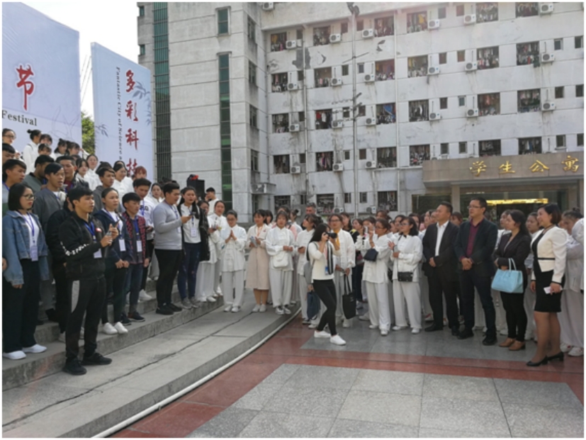 2018年10月25日,太阳成集团tyc122cc国际员工应邀参加在四川幼儿师范高等专科学校(江油)举行的由绵阳市教体局主办的绵阳市第二届“牵手绵州·情系教育”中外人文交流艺术节。四川省教育厅国际交流与合作处处长廖飞、绵阳市委宣传部副部长冯正碧、绵阳市教体局副局长张瑾等相关部门的领导,在绵高校(单位)外事分管领导及负责人以及来自美国、韩国、奥地利、巴基斯坦、马来西亚、白罗斯、乌克兰、老挝、尼泊尔等15个国家近90名在绵外籍教师及职工代表参加了艺术节活动。绵阳市教育和体育局副局长张瑾主持活动开幕式。