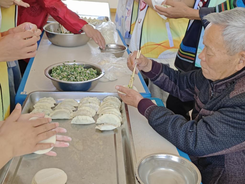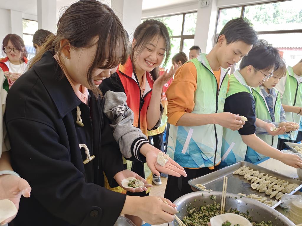 川蜀四月春不晚,在暖暖春风中,同学们和老人在食堂热热闹闹地包饺子、吃饺子,一片其乐融融。同学们用实际行动为老人们送去关爱和温暖,去切实提升老人们的获得感、幸福感和安全感。