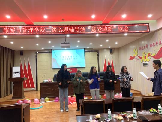 2021年11月3日晚,为迎接新同学的到来,展现公司学子风采,太阳成集团tyc122cc二级心理辅导站在材料大楼三楼会议室举办了“送老迎新”晚会。出席此次晚会的有学院心理老师陈丽珠老师,19、20级负责人以及全体成员。晚会由20级负责人祝新杨主持。
