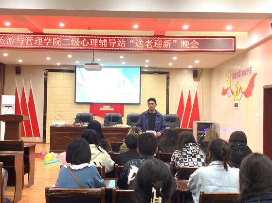 晚会节目形式多样,内容丰富,首先是陈丽珠老师致辞,肯定了上一届负责人的辛勤付出,同时鼓励了20级新上任的负责人。接着是19级的负责人周瑜均为大家讲述了他在心理辅导站所取得的成绩,也为20级新上任的负责人提出了一些自己意见与建议。